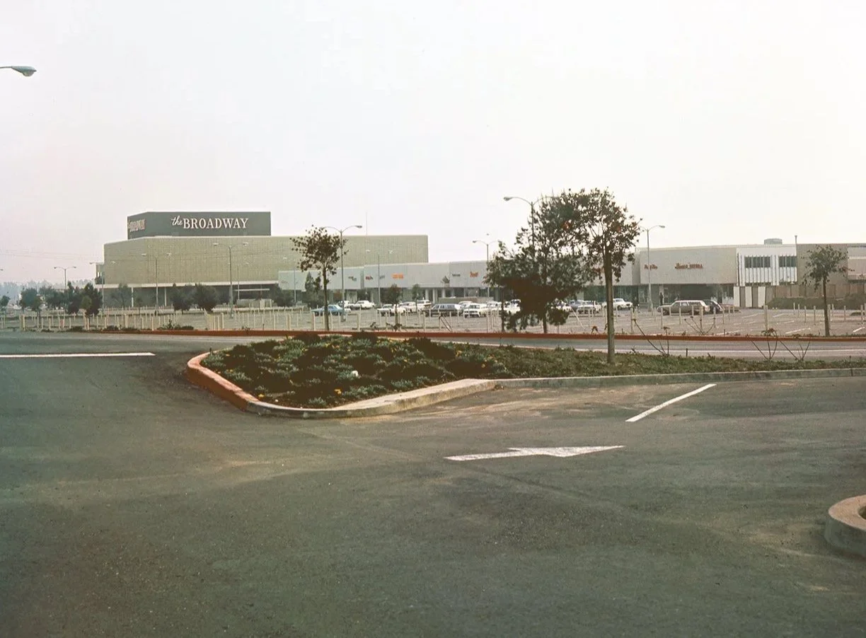 A 2-level (204,000 square foot) J.C. Penney, built between the North Mall and South Mall, was officially dedicated on November 10, 1965. With Penney's grand opening, the Buenaventura Center was completed, with 700,000 square feet of shopping space. The main entrance to the mall was the center of Mills, with miles of parking, trees, and shops that opened directly to the parking lots as well as facing in, in the modern open-air walkway. The plaza was a shopping hub for our city and drew crowds from Northern counties and Los Angeles